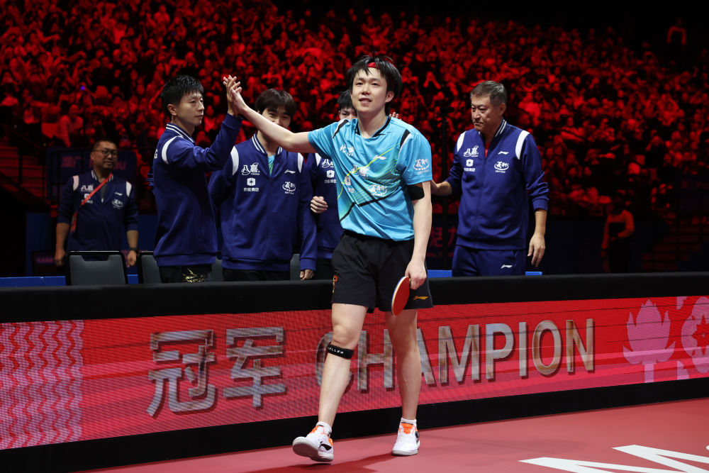“我们(北京队)为了获得这枚金牌,已经准备了32年。参赛运动员的年龄构成是这样的。”时代有老年、中年、青年。马龙正在参加最后一场全国比赛,王楚钦25岁,已是“中年”,年龄最小的是黄宥政(20岁)。这就是我们今天能够赢得金牌的原因。我要感谢球员们。”张雷说道。
